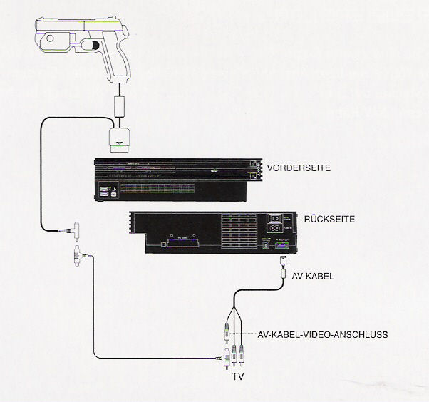 - Welche Lichtpistole soll ich mir kaufen? - Welches Spiel eignet sich am besten für den Einstieg in dieses Genre? - Mit welchem Spiel hab ich am meisten zu zweit Freude? - Kann ich auf jedem Fernseher mit meiner Lightgun spielen? - Ich kann meine Dreamcast Lightgun-Spiele nicht mit meiner Lightgun spielen. Warum? - Ich habe eine Lightgun gesehen, die nicht hier aufgeführt wurde. Wie erkenne ich eine gute Lightgun? - Bei welchem Spiel muss ich welche Lightgun, wie anschließen? - Wie schließe ich meine G-Con2/G-Con 45 richtig an? Die PlayStation 2, da sie die meisten Titel bietet, die an Qualität und Umfang zum größten Teil überzeugen. Zudem können alle Spiele der PlayStation weiterhin gespielt werden. Andere Konsolen bieten einfach zu wenig Games bzw sind nicht mehr auf dem aktuellen Stand. Lohnenswert sind diese aber trotzdem. Ich rate jedem, der erst jetzt mit dem spielen eines Lightgun-Shooters anfängt, in erster Linie keine Alternativ-Produkte zu kaufen, sondern anfänglich immer erst nach NAMCO Spielen und Pistolen Ausschau zu halten (soweit ihr auf der PS2 zocken wollt). Erst bei späterem Bedarf sollte auf Dritthersteller zurückgegriffen werden. Die erste Wahl sollte dabei der Hersteller Logic3 sein. Eigene Erfahrungen zu sammeln, ist aber selbstverständlich immer noch am besten. Folgende Guns kann ich uneingeschränkt empfehlen: G-Con2, G-Con45, P99L und PX098. Bei einigen Konsolen (beispielsweise der Xbox) ist es etwas komplizierter, da es keine Hersteller wie Namco gibt, jedoch empfehlen die Hersteller der Spiele meist Lightguns die am besten kompatibel sein müssten. Ansonst sind wir für alle Fragen stets zu diensten. Beim Kauf solltet ihr darauf achten Neuware zu ergattern! Seid gerne bereit viel Geld für eine Lightgun auszugeben, zumal sie das wichtigste Utensil sein wird, das ihr in diesem Genre braucht. Sparsamkeit wird hier nämlich nicht belohnt! PlayStation 2: Time Crisis 2 mit G-Con2 im Bundle. House of the Dead 2, Confidential Mission (DC), House of the Dead 3 (Xbox), Vampire Night, Virtua Cop Elite Edition, Gunfighter II, Crisis Zone in Verbindung mit der Light Rifle (PS2) und natürlich alle Point Blank Titel (PS). Bei der Möglichkeit zwei Konsolen (PS2 v4 mit i.LINK) zu verbinden rate ich dringend zu Time Crisis 2 oder 3; wirklich ein grandioses Zweispielererlebnis!!! ;) HotD2 ist in HotD3 enthalten, somit müsst ihr euch nicht extra eine Dreamcast kaufen. Für Confidential Mission kommt ihr aber nicht um den Kauf herum, wobei es sich gerade deshalb lohnt. Xbox und Dreamcast liegen derzeit aber preislich gleich auf. Nein! 100Hz Geräte, Plasma, LCD, zu kleine Bildschirme oder Projektore sind eigentlich tabu (und auch einige andere, eine Liste kann man zB. bei NAMCO anfordern), dazu gehören auch TV-Geräte, die irgendwelche besonderen Techniken (Bild in Bild Funktion, Progressive Scan, HD usw.) unterstützen. Deshalb gilt: wer Lightgunspiele als Lieblingsgenre ansieht wird sich einen passenden 50/60Hz kompatiblen Fernseher (mind. 80cm Durchmesser) besorgen! ;) Drittanbieter können allerdings schon seit einiger Zeit mit 100Hz kompatiblen Guns auffahren (zB. die Scorpion³ oder die PX098/Assault Rifle), was aber nicht immer zuverlässig funktioniert. Darüber hinaus gibt es auch Guns, die so ziemlich alle Geräte abdecken: LCD Topgun (http://www.hkems.com/product/xbox/LCDTopGun.htm) oder die RGT:G1 (http://www.erealgames.com/). Fallt nicht auf eBay und dubiose Angebote herein!!! Es ist möglich, dass entweder die Lightgun oder das Spiel NTSC bzw. PAL Format besitzt. Beide müssen aber das identische Format haben. Ich habe schon öfters gelesen, dass diese Behauptung nicht stimmen würde, da Hardware Norm-Unabhängig sei. Ich lade jeden Zweifler gerne zu mir ein: mein japanisches Death Crimson OX läuft nur mit meiner amerikanischen Lightgun, sobald ich die, in Deutschland gekaufte Lightgun anschließe, kann man nicht mehr auf den Bildschirm feuern. Die Lightgun wird einfach nicht erkannt. Genauso steht es mit allen anderen NTSC bzw. PAL Spielen. Das seltsame hierbei: Auf meinem Saturn funktioniert wieder alles untereinander. Beide Konsolen wurden mit einem Super-Scart Kabel an den Fernseher angeschlossen. Ich habe eine Lightgun gesehen, die nicht hier aufgeführt wurde. Wie erkenne ich eine gute Lightgun?