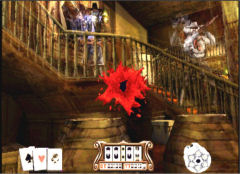 ![]() Waren die Cowboys damals wirklich so kantig? Der Spieler schlüpft in die Rolle von Jesse James, der seine Freundin aus den Klauen eines üblen Gangsterbosses befreien muss. Auf seinem Weg zum Showdown schießt man sich durch einen Saloon, eine alte Ruine, eine Mine, einen Zug und schließlich die Banditen verseuchte Stadt des Obergangsters. Dabei laufen einem meistens nur Bösewichte vor den Revolver, nur selten tauchen Zivilisten auf die man verschonen muss! Diese sind aber manchmal schwer zu identifizieren und werden daher beim ersten Mal spielen höchstwahrscheinlich niedergestreckt. Beim zweiten Mal spielen, weiß man dann aber wo und wann ein Zivilist auftaucht. Ebenso verhält es sich mit den Feinden. Gespielt wird wie bei Time Crisis: Die Spielfigur verschanzt sich immer hinter Gegenständen und man kann zum feuern die Deckung verlassen. Ob man dafür eine Taste drücken oder loslassen muss ist Einstellungssache. Die Levels sind kurz und die Endbosse sind keine wirkliche Herausforderung. Dass der Schwierigkeitsgrad dabei nicht gewählt werden kann, macht die Sache noch schlimmer. ![]() Treffer! Wenn euch der Feind erwischt, kommt das deutlich zur Geltung. Wirklich gut hingegen ist die Musik gelungen. Die Stücke hören sich gut an und geben gut die Atmosphäre der jeweiligen Location wieder. Wobei der Sound hingegen wieder nicht durch Klasse besticht. Hier wird einfache Kost geboten. Bleibt noch die Grafik: Wie auch beim ersten Time Crisis wirken die Gegner kantig. Hinzu kommt das sie sich recht hektisch bewegen. Der Rest ist Durchschnitt. Was jedoch sehr störend auffällt ist das Fehlen eines Mehrspielermodus! Warum wurde nicht ein Duell eingebaut oder ein kooperativer Modus wie in Time Crisis 2? Eigentlich schade, dass hier nicht mehr daraus gemacht wurde. Wilder Westen und Lightguns passen eigentlich zusammen wie die Faust aufs Auge. Leider wurde hieraus eher nur ein Schlag ins Gesicht! Es gibt aber mittlerweile einen Nachfolger für SONYs PS2. Dessen Qualitäten lest ihr in einem anderen Test!