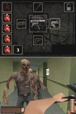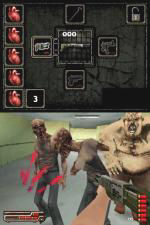 Geschossen wir per Stylus und nachgeladen indem ihr die Munition, die ihr rechts unten (je nach Einstellung, ob ihr Rechts- oder Linkshänder seid) am Bildschirm seht, nach links ins Magazin zieht. Daraufhin erfolgt eine kurze Nachladesequenz. Kommt euch ein Zombie zu nah, darf ihm aber auch gerne mit der im späteren Spielverlauf gefundenen Brechstange eins übergezogen werden. Hierzu bewegt ihr den Stylus schnell von links nach rechts quer über den Bildschirm oder umgekehrt. Die Waffenauswahl vollzieht ihr mit dem Steuerkreuz, wobei ihr auf dem oberen Bildschirm einsehen könnt, wo welche Gun liegt. Insgesamt könnt ihr vier Waffen tragen: Beretta, Schrotflinte, Brechstange und MG, die ihr auch in dieser Reihenfolge während der 4 Kapitel mit je 3 Level einsammeln werdet.