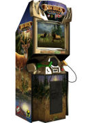 Wer also keinen Jagdschein besitzt oder machen möchte; wer also keinen Waffenschein besitzt oder machen möchte; wer also lieber in einer bunten, trockenen und lauten Spielhalle sein Unwesen treibt als in einem kalten, feuchten und ruhigen Wald...für den ist das Spiel genau das richtige! Zu Beginn wählt man aus, auf welche Tierart man Jagd machen möchte. Neben den bekannteren Arten wie Hirsch und Elch, gibt es auch exotischere Ziele wie Antilopen die logischerweise in unterschiedlichen Gebieten auftreten. So streift man durch dichte Wälder oder auch sandige Steppen, je nachdem auf welche Trophäe man es abgesehen hat. Erlegt werden alle Tiere aber gleich, mit eurer stattlichen Flinte pumpt ihr sie voll Schrot! Präzise Schützen zielen auf und treffen lebenswichtige Punkte wie den Kopf oder das Herz, und bescheren damit dem virtuellen Getier einen schnellen und weniger schmerzhaften Tod. Dafür gibt es dann auch mehr Punkte, ebenso wenn man alle auftauchenden Ziele erlegt. Insgesamt geht man pro Jagdgrund fünf mal auf die Pirsch und begegnet dabei jeweils drei Hauptzielen. Daneben dürfen herumstreunende Wölfe oder Koyoten zusätzlich erledigt werden, die Kälber müssen aber verschont werden! Wer sich nicht an diese Regel hält und statt den Bullen auch die weiblichen Kühe ins Visier nimmt, für den ist diese Jagd gelaufen. Am Ende der fünf Jagdausflüge wartet noch ein Minispiel. Hier müssen dann zum Beispiel rotierende Ziele, Enten oder Eichhörnchen getroffen werden. Eure Flinte hat jeweils immer nur einen Schuss Munition, nachgeladen wird wie bei einer Pump Action. Neben einer zweckmäßigen und durchschnittlichen Grafik, bietet BBHP nicht viel für die Ohren. Aber auf der Jagd sollte man ja ohnehin keinen Lärm machen!