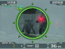 ![]() Das Geschütz am Ende des ersten Abschnitts zerlegt ihr am schnellsten mit dem Granatwerfer. Im garantiert nicht letzten Teil der Hitserie gilt es die Insel Astigos von den feindlichen Truppen der Förderation von Zagoria zu befreien, die dort eine Invasion gestartet haben. Der bekannte VSSE hat in Erfahrung gebracht, dass die Eindringlinge Raketen besitzen, die sowohl die Insel, als auch die benachbarten Länder bedrohen. NAMCO hat es vorgezogen zwei neue Charaktere zu entwerfen, die sich diesmal ins Getümmel begeben. Zudem gibt es noch einen dritten Charakter, der erst freigespielt werden muss und eine eigene Mission hat, die Parallel zur Hauptmission der zwei Agenten verläuft. Hierbei steuert ihr Alicia Winston, die Schwester des Anführers der Rebellen von Astigos (Lukano). Diese Zusatzmission erweist sich als absoluter Knüller, da hier später auch ein Scharfschützengewehr, wie bei Silent Scope, eingesetzt wird, wobei die Steuerung sehr intelligent gelöst wurde. Hier aber bereits eine Warnung: Macht euch in Sachen Schwierigkeitsgrad noch mal um einiges gefasst!!! Die Grafik ist die bisher Beste im Lightgun-Genre auf der PS2 und gefällt auf Anhieb. Auch die Gegner sehen sehr gut aus und Bewegungsabläufe sind sowohl authentisch, als auch individuell. Die Abwechslung in der Levelgestaltung ist diesmal allerdings nicht so vortrefflich, wie bei Time Crisis 2 und teilweise eintönig (besonders Wasserfall und griechische Stadt), jedoch immer noch besser als in vielen anderen Lightgun-Shootern (besonders der komplette letzte dritte Abschnitt ist überwältigend). Mich persönlich stört nur, dass es jetzt neuerdings Gegner gibt, die man öfter als einmal treffen muss und dass es neben der Standard Wumme auch noch eine Schrotflinte, eine MG und einen Granatwerfer gibt, die es zu benutzen gilt, denn andernfalls wird es unmöglich das Spiel auch nur einmal zu beenden (nach langer Übungsprozedur natürlich schon)! Da hätten die Entwickler doch lieber beim alten Schema bleiben sollen, obwohl dies natürlich auch dazu beiträgt, dass das Spiel nun eine echte Herausforderung darstellt, da es um einiges komplizierter und komplexer ist. Außerdem gewöhnt man sich daran. Um besagte Zusatzwaffen nutzen zu können, sollte man die Gegner in gelb (wie immer verschieden farbige Gegner, wobei diesmal die grünen am schlechtesten und die üblich roten am genausten zielen) oft genug treffen (ein Combo von drei Treffern ist das Höchste der Gefühle), da diese bei jedem Treffer ein bis drei (je nach Treffern) Pakete Munition für die jeweilige Waffe ausspucken. Im Versteck kann dann eine der Waffen ausgewählt und benutzt werden, bis die eingesammelte Munition verbraucht ist. Dieses System ist eine sehr gute Lösung und die beste Alternative zu der üblichen Vorgehensweise bei anderen Spielen des Genres, bei denen man die Waffe dann zwangsweise benutzen musste. ![]() Verwinkelte Gassen und massig Gegner: In dem Dorf geht die Post ab! Musik und Sound sind wie bei Time Crisis Spielen üblich passend und stimmig. Die Story ist besonders gut gelungen und gleicht einem typischen Action-Film, da das Spiel mit sehr schönen Zwischensequenzen durchzogen wurde (alle Missionen), die zudem eine perfekte Synchronisation aufweisen. Am vortrefflichsten überzeugen die schönen Innen- und Außenlevel (trotz erwähnter Eintönigkeit), sowie die neuen (und alten) Endbosse, obwohl nur der Kampf gegen Wild Dog und Wild Fang wirklich Spaß macht, die anderen sind etwas uninspiriert und nervig (besonders der erste Boss aus dem Flugzeug). Grafisch wurde wirklich sehr viel Liebe in das Spiel gesteckt, so dass man sich optisch sehr wohl fühlt. Beim Zweispieler Modus kommt natürlich, wie bei den TC-Teilen üblich, erst dann Freude auf, wenn zwei Fernseher, mit zwei Guns, zwei PlayStation2 (nur mit der alten PS2, die mit i.LINK/Firewire-Ausgang ausgestattet ist) und zwei Spielen aufeinander treffen. Auf nur einem Bildschirm benötigt man einen sehr großen Fernseher, da jeder Mitspieler einen eigenen Bildschirm (wird in zwei Hälften geteilt) hat, der natürlich sehr klein ausfällt. Denn wie bei Teil 2 sind zwei, aber dafür neue, Agenten des VSSE unterwegs und jeder bestreitet einen anderen Weg (natürlich immer im Team, zur Unterstützung). Die Präzision und Kalibrierung ist nicht weiter zu erwähnen, da diese wieder mal ungeschlagen, wie für NAMCO üblich, ist. Das Spiel kann wieder im Bundle oder auch einzeln gekauft werden, wobei ich den Leuten, die erst eine GCon2 haben, auch zum Bundle raten würde (die gar keine besitzen sollen sich was schämen). ![]() Der Sniper-Teil ist eine innovative Neuerung zum bewährten Duck&Reload Prinzip der Serie.