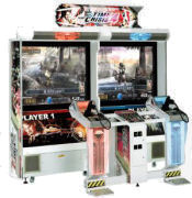 ![]() Die erste Szene im Spiel! Es kann also los gehen! An vorderster Spitze treten zwei neue Agenten an (der eine ähnelt Orlando Bloom sehr stark), die aber wie eh und je gestrickt sind. Wie bereits in Teil 3 kennen gelernt, stehen euch vier Waffentypen zur Auswahl (Pistole, MG, Shotgun und Granatwerfer), die ihr euch in der Deckung auswählen könnt. Das "Duck&Reload"-Prinzip wurde beibehalten (leider ist das Pedal am Automaten wieder Mangelware) und auch sonst sind keine beachtlichen Neuerungen zu sehen. Grafisch reiht sich das Game nämlich gerade mal leicht vor Time Crisis 3 ein und nur die in speziellen Situationen zur Verfügung stehenden schwereren Waffen (zB. ein Scharfschützengewehr oder eine größere MG) bieten etwas Neues. ![]() In solch einer Situation dürfen auch mal schwerere Geschütze aufgefahren werden. Die Gegner sind wieder Klasse animiert und zum ersten Mal dürfen auch andere Feinde, nämlich Ungeziefer, dran glauben. Ungeziefer? Allerdings! Leuchtet mir auch nicht ein und es spielt sich wie ein Minispiel. Tausende von Krabblern müssen möglichst schnell von der Bildfläche verschwinden, was zwar nicht unbedingt nervig, aber unpassend ist. Dabei helfen euch die besonderen Tipps eures dritten Kameraden, den ihr gleich zu Beginn des Spiels trefft, weiter, der euch dann zum jeweiligen Waffentyp rät. Dieser kann ganz schon nerven. Wieder macht Namcos neuster Titel aus der Lightgunreihe alles gut, allerdings nichts besser. Trotzdem lohnenswert und spaßig und deshalb sein Geld wert.