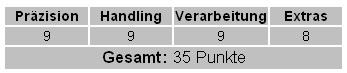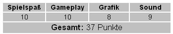 Unser Wertesystem erstreckt sich bei Spielspaß, Gameplay, Grafik und Sound von 1 (grottig) bis 10 (exzellent) Punkten. Die Summe aus diesen vier Kriterien ergibt das Endergebnis. Bei einer Wertung von über 35 Punkten erhält das getestete Spiel ein besonderes Prädikat. Eine Wertung von 30-35 Punkten verspricht ein gutes bis sehr gutes Spiel. Spiele mit unter 20 Punkten sind mit großer Vorsicht zu genießen. Alles dazwischen ist der übliche Durchschnitt, der gespielt werden kann, aber nicht muss.
